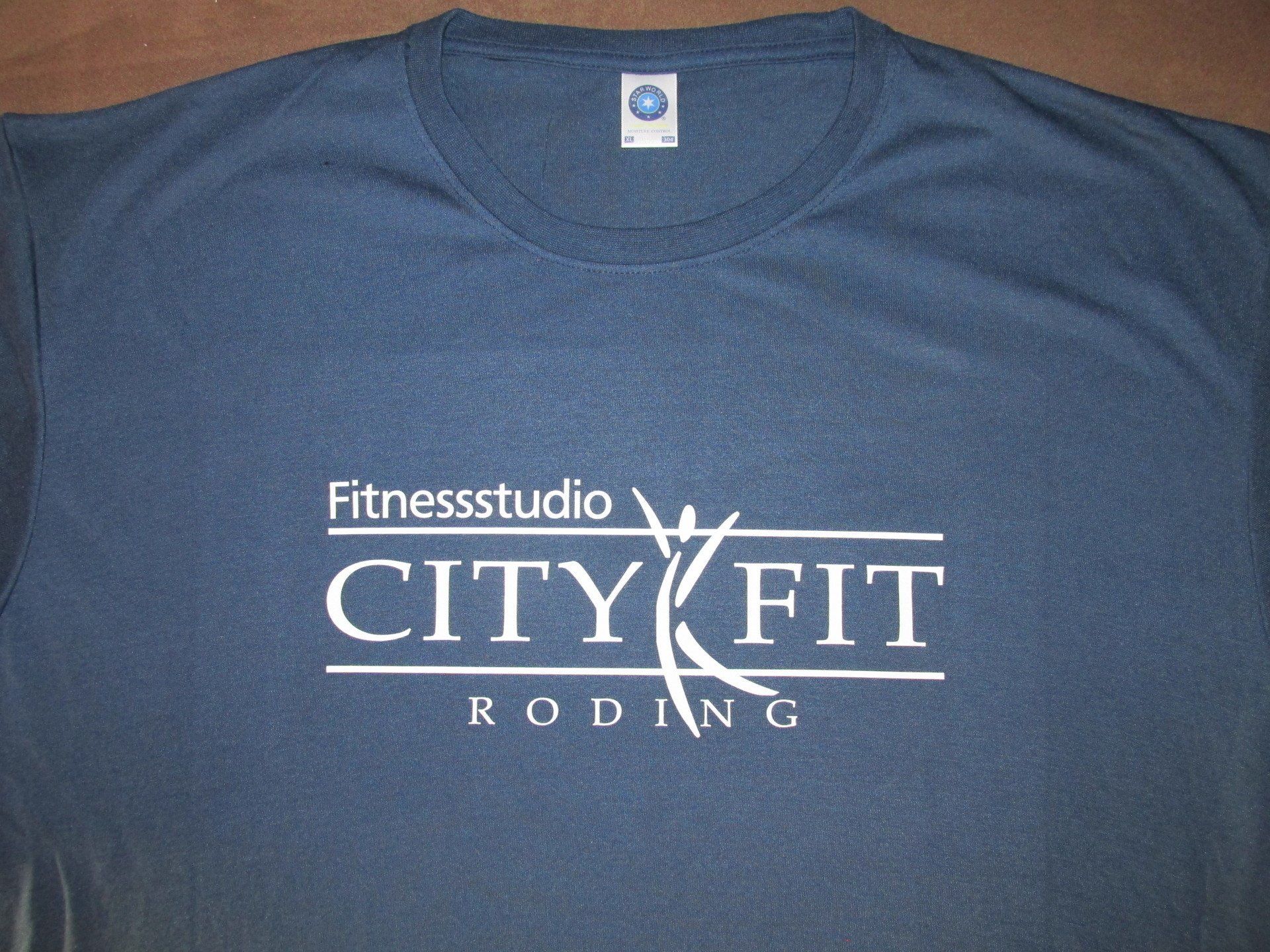dünne Transferfolie wird mittels Ecosolventdrucker bedruckt, ausgeschnitten, mit Flüssiglaminat versiegelt und dann auf das Textil übertragen. Der Habitus ist etwas steif.